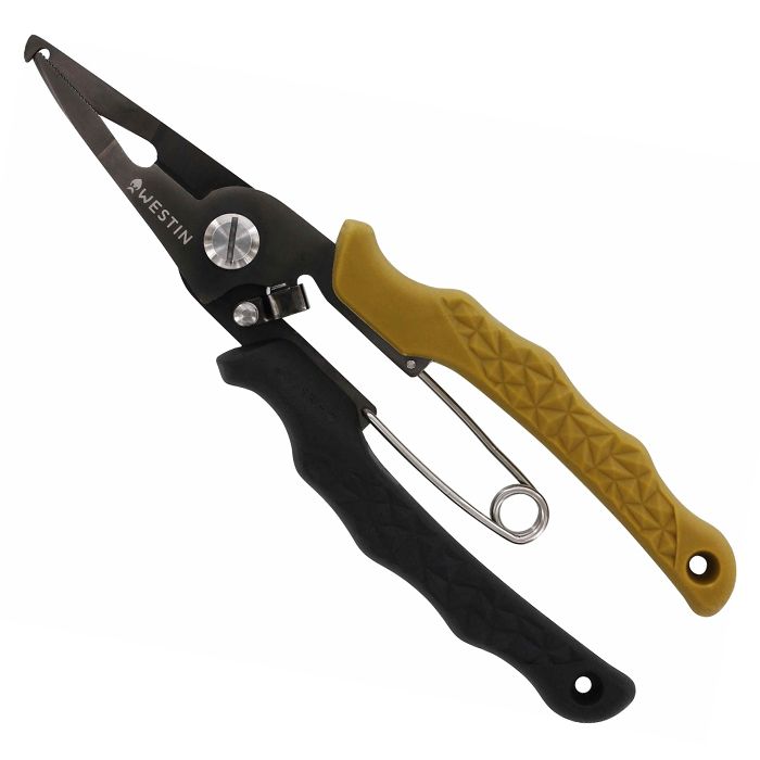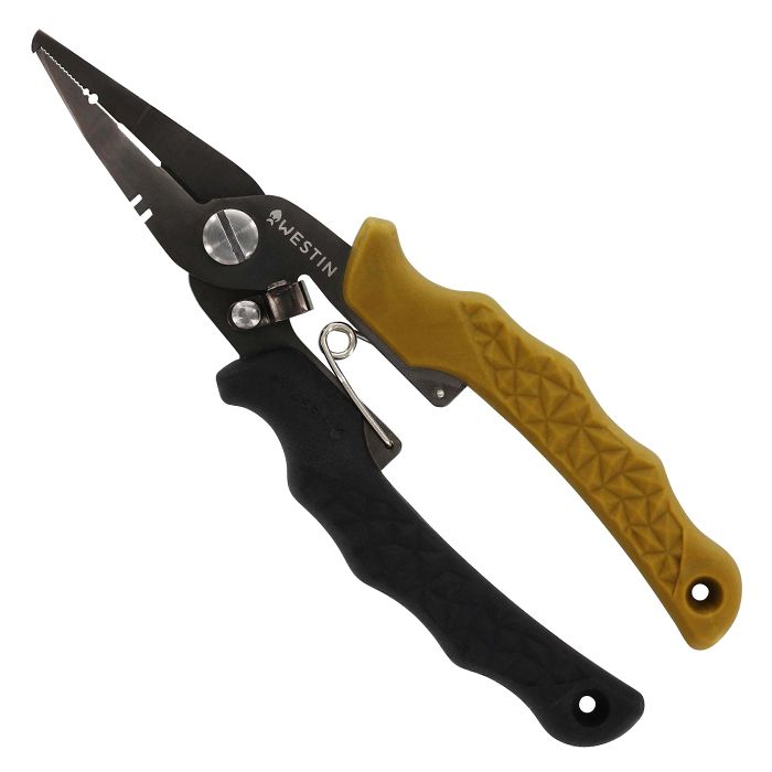 The Westin HD Split Ring Pliers are perfect for any angler. Made with stainless steel and a corrosion resistant titanium coating, these pliers are built to last. Thesplit ring opener and serrated cutting edge make it easy to add or remove lures, while the ergonomic and durable soft-touch grip handle ensures a comfortable grip.