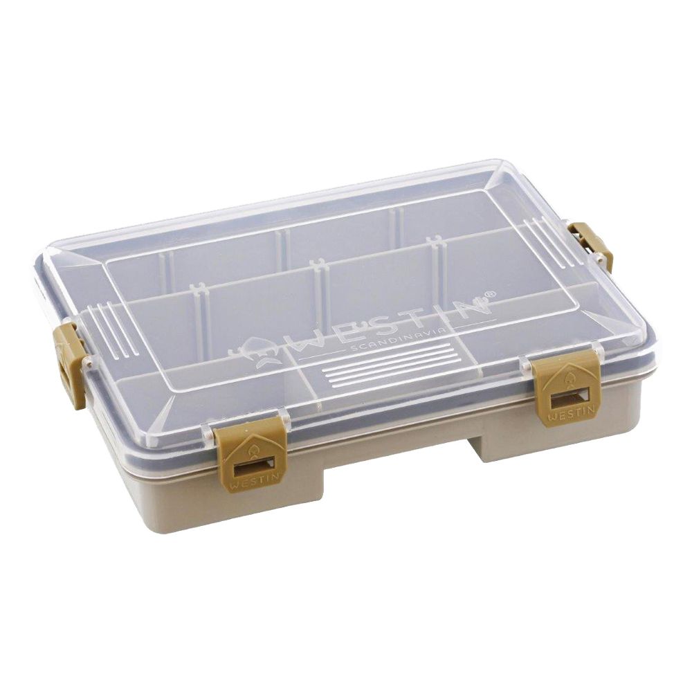 Westin’s W3 waterproof tackle box is the answer for dry storage of your fishing supplies on the boat or near water. The tackle box features a water-resistant rubber seal on the inside of the hinged lid, which keeps water out. Flavoured lures in liquid can also be stored in this box without leakage into your boat, bag, or car. This box is an S7 model with three fixed compartments in the front third and two fixed full length compartments with six dividers.
